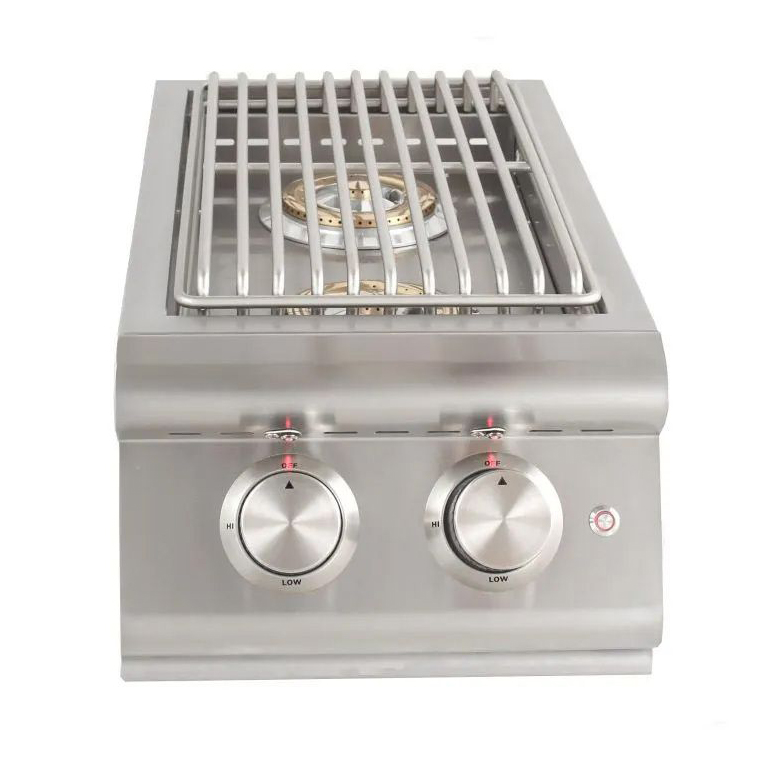 Der Blaze Built-In Double Side Burner überzeugt mit zwei leistungsstarken Messingbrennern mit je 3,5 kW und einem robusten Edelstahlgehäuse - perfekt für Outdoor-Kochabenteuer. Der abnehmbare Deckel schützt die Brenner vor Witterung, während die Push-&-Turn-Zündung schnelles Anfeuern garantiert.