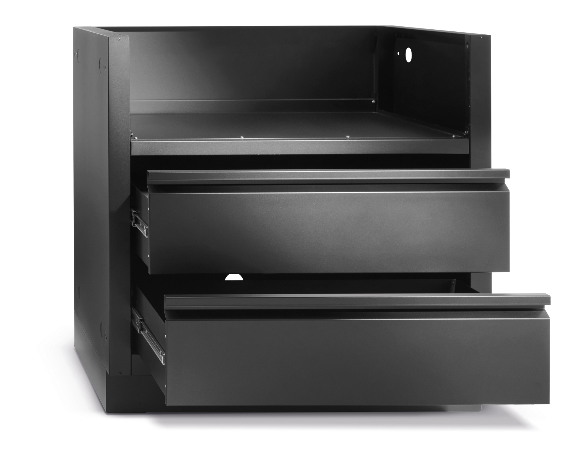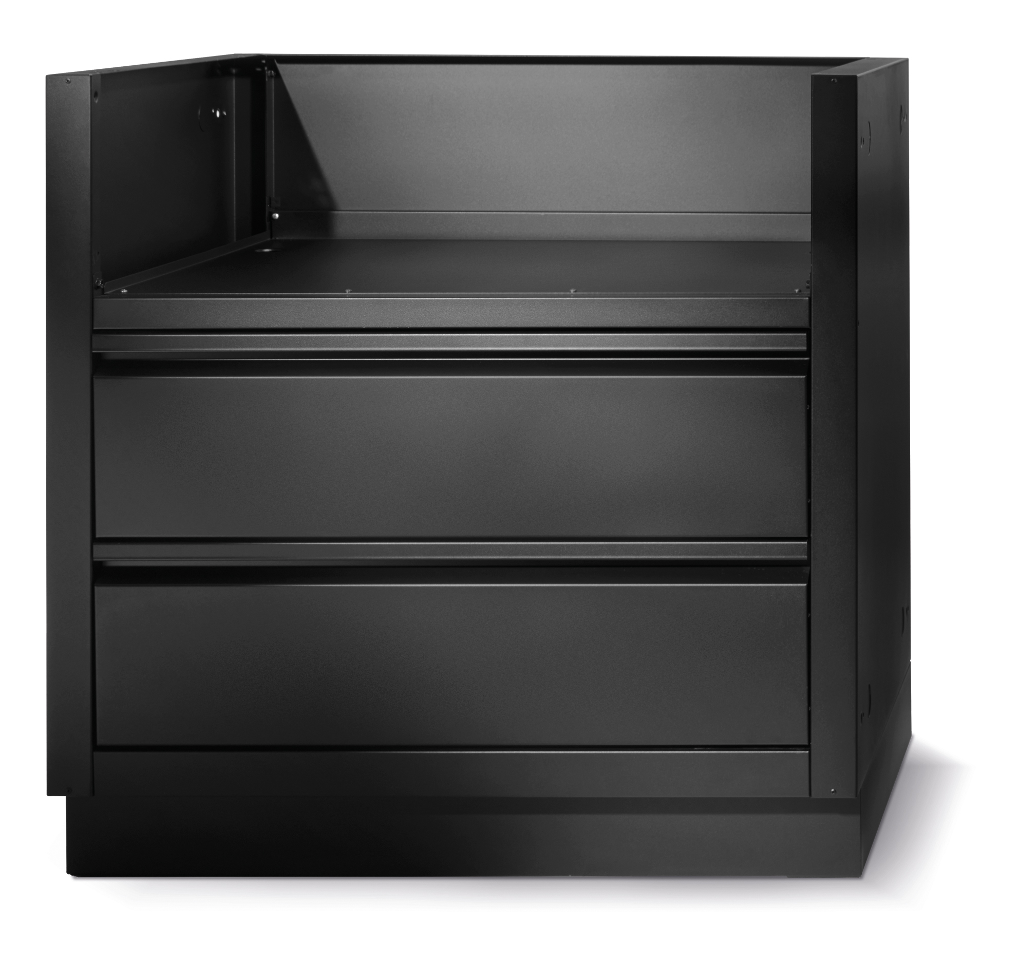 Speziell für die 32-Zoll-Gasgrillköpfe der Built-In 500 & 700 Serie gefertigt, bietet dieses matt schwarze, pulverbeschichtete, glavanisierte Gehäuse erhöhte Haltbarkeit dank des zweischichtigen Pebble-Finish-System aus. Zwei Schubalden aus Edelstahl sind auf leichtgängigen Soft-Close-Schienen montiert und bieten pratischen Stauraum unter dem Grill. Die Installation ist super einfach dank der Aussparungen für Gas und Strom.