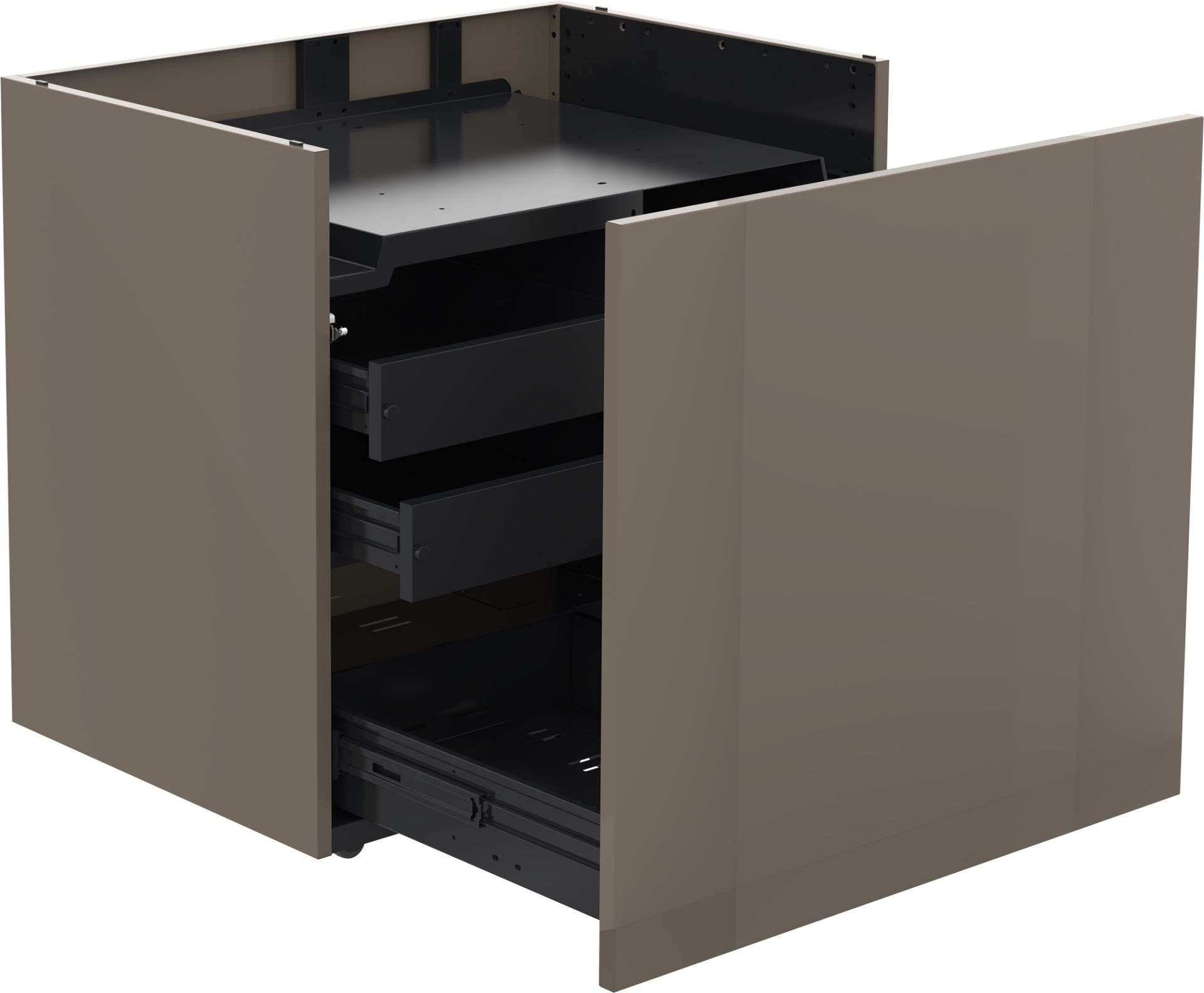 Als elegante Alternative zum festen Einbau verwandelt er den QUBE Einbaugrill in eine freistehende Grillstation im schweizer Design und mit durchdachten Funktionen harmonisch vereint. Der leichtgängige Vollauszug mit einer Abstüztrolle trägt bis zu 50 kg, nimmt eine 11 kg Gasflasche sicher auf und wird durch zwei Schubladen mit Softclose ergänzt, sodass Zubehör und Grillutensilien stets griffbereit organisiert sind. Höhenverstellbare Füße ermöglichen einen präzisen Niveauausgleich, während robuste Polyamid-Rollen und die schalldämpfende Außenwandkonstruktion für spürbaren Komfort und ruhige Laufeigenschaften sorgen.