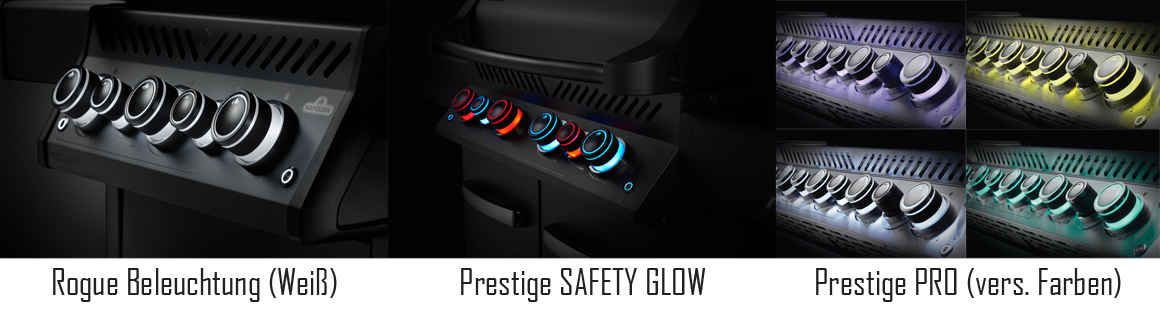 Das Beste: In diesen NIGHT-LIGHT Grillknöpfen ist auch das SAFETY GLOW System enthalten! Sobald der Knopf aufgedreht ist und Gas fließt geht die Beleuchtung auf Rot. So sieht man direkt bei welchem Brenner Gas fließen könnte. Die anderen Knöpfe leuchten in einem beruhigenden Blau.