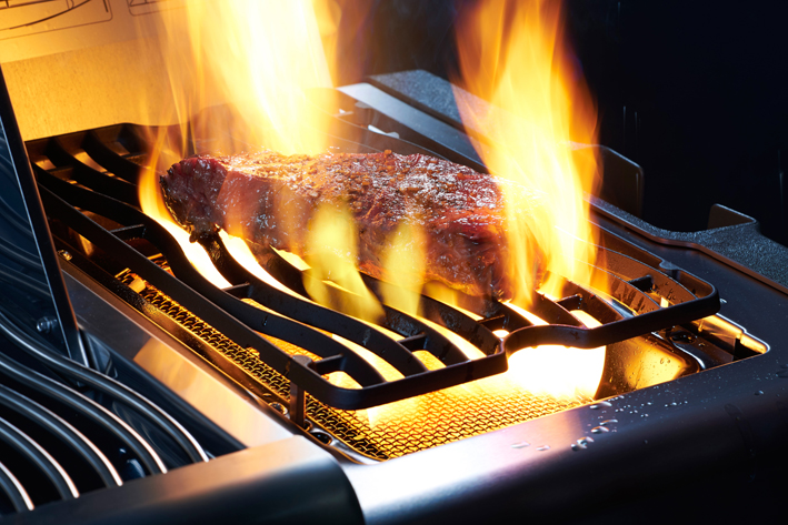 Darüber hinaus entsteht ein konsistenter Hitzebereich, der bei weitem einfacher zu regulieren ist, als bei einem Holzkohlefeuer. Stellen Sie für sofortiges Angrillen den Brenner zunächst auf hohe Flamme und reduzieren Sie die Brennerflamme für die weitere, langsamere Zubereitung. Zusammenfassend lässt sich sagen, dass die Infrarotbrenner von Napoleon extrem hohe Temperaturen erzeugen und perfekt für die Zubereitung von saftigen Steaks, Hamburgern und anderen Fleischsorten geeignet sind.