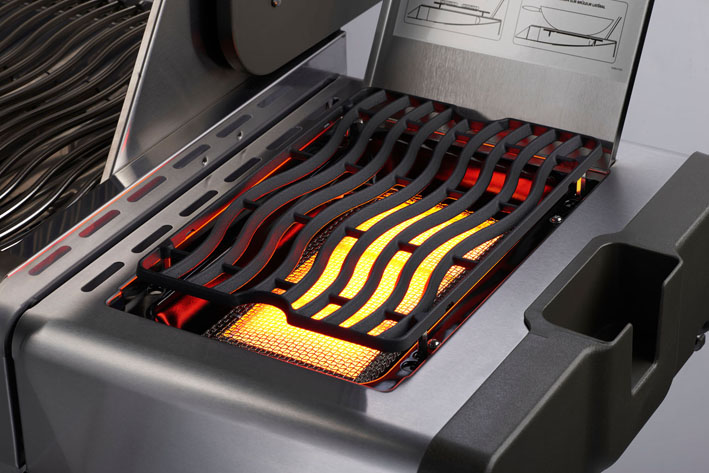 Holzkohle ist die traditionelle Art des Infrarotgrillens, mit der wir alle vertraut sind. Die glühenden Briketts geben Infrarotenergie an das Grillgut ab. Das Grillgut wird hierbei kaum ausgetrocknet. Der Infrarotbrenner von Napoleon funktioniert auf ähnliche Weise. jeder Brenner enthält Tausende von Flammenauslässen, die die keramische Oberfläche aufheizen, bis sie rot zu glühen beginnt (erkennbar nur bei Dunkelheit). Durch dieses Rotglühen wird die gleiche Art von Infrarotstrahlen an das Grillgut abgegeben - ohne den beim Holzkohlegrills nötigen Aufwand.