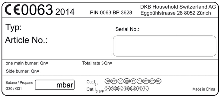 Je nach Grillmodell finden Sie die Seriennummer auf dem Datensticker, welcher sich entweder am Grillgestell oder auf der Bodenplatte befindet.