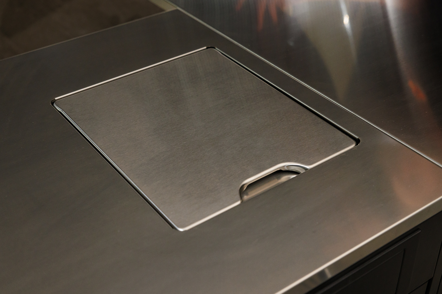 | Arbeitsfläche | 2 Stück aus Edelstahl, rechtes Seitenteil abklappbar |