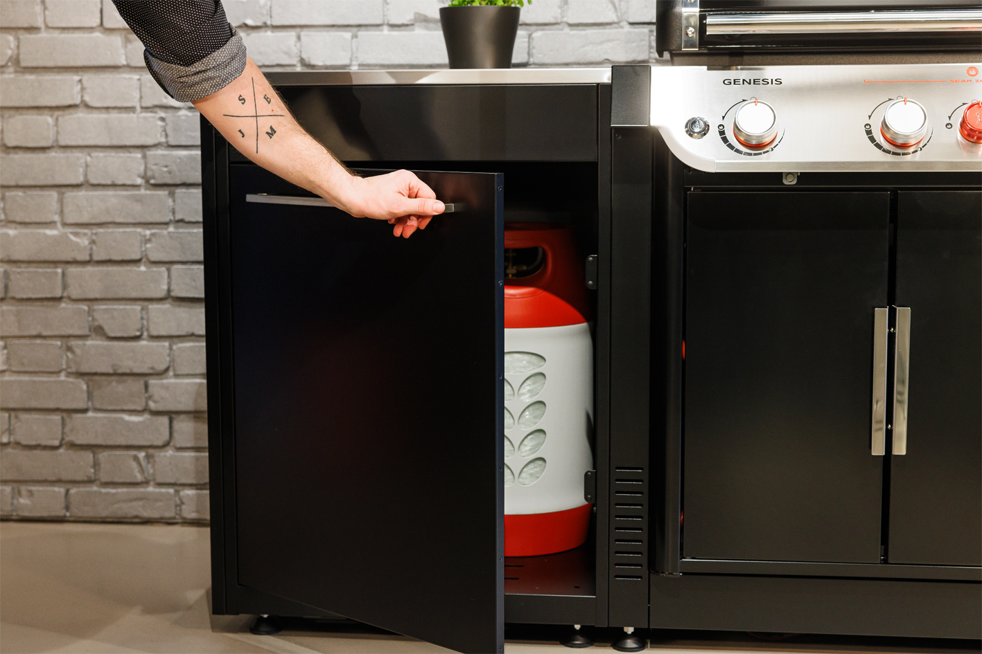 Das Seitenbrenner-Modul ermöglicht die vollständige Integration des Seitenbrenners des Gasgrills in die BBQ-Außenküche. Außerdem bietet das Seitenbrenner-Modul Platz für Gasflaschen und sperriges Zubehör für den Grillabend. Dieses Modul ist in verschiedenen Versionen erhältlich, die auf den jeweiligen Gasgrill zugschnitten sind.