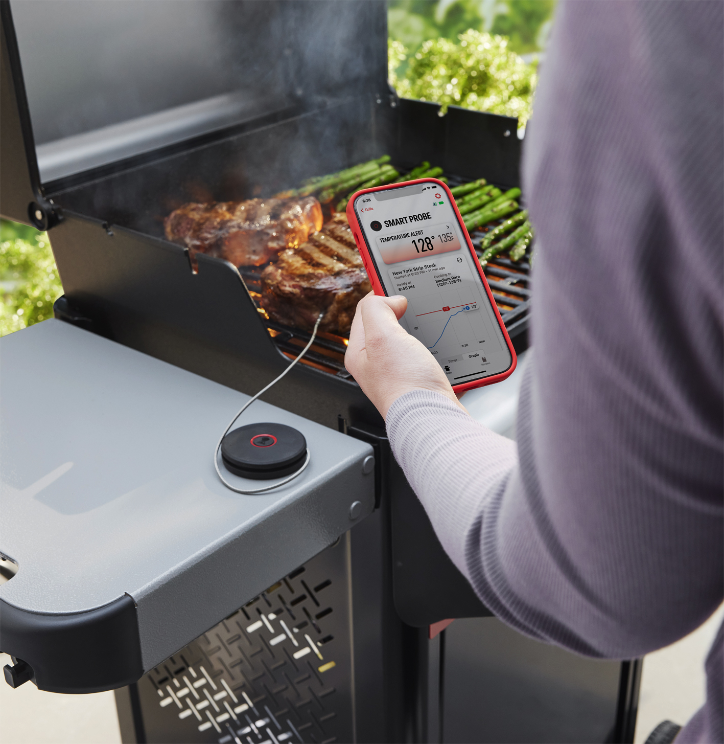 - Remote-Garen mit der Weber Connect App zur Überwachung der Garguttemperatur inkl. Wende- und Servierhinweise