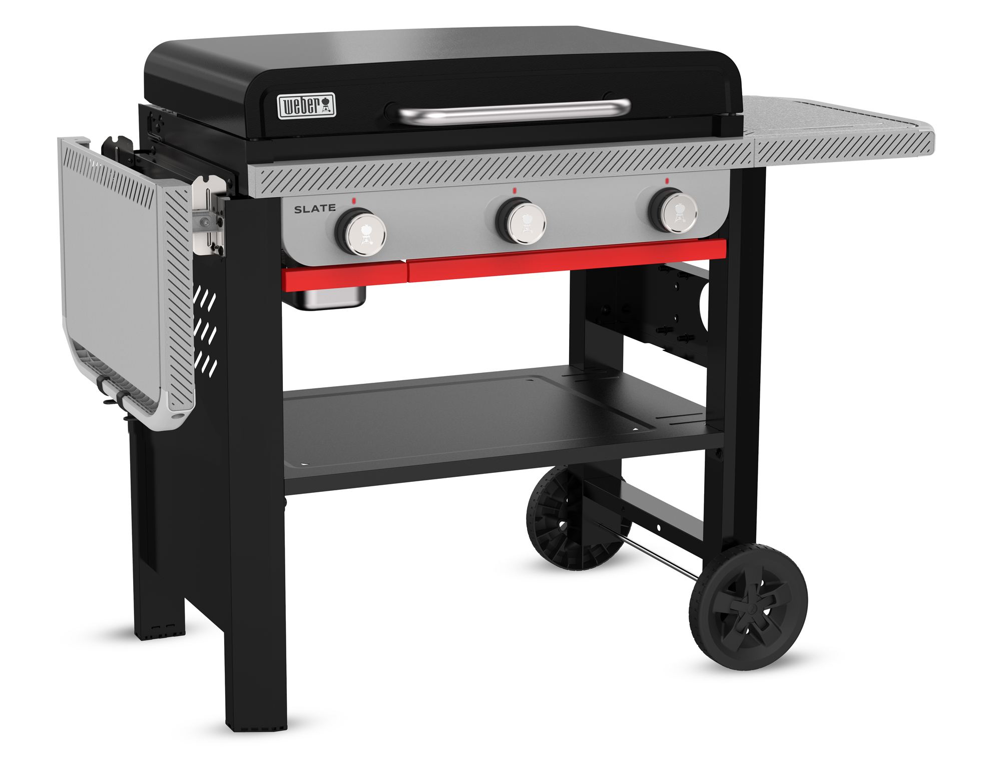 - Die seitlichen Weber Works Schienen sind passend für Snap-on-Zubehör (separat erhältlich), wie z. B. ein Organizer-Set zur Aufbewahrung von Papierhandtüchern, Grillwerkzeugen und Müllbeuteln oder einen Flaschenhalter, damit du beim Grillen einen Schluck trinken kannst.