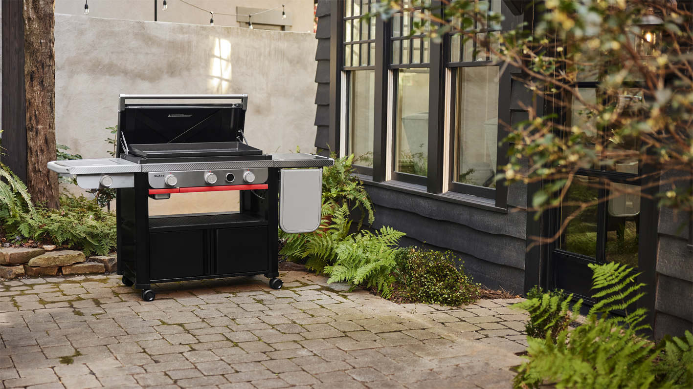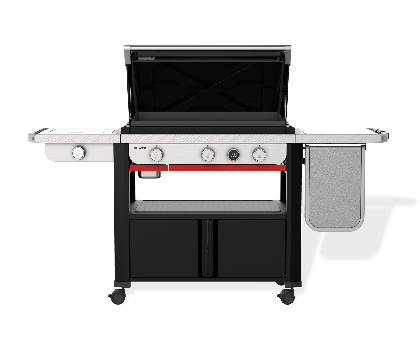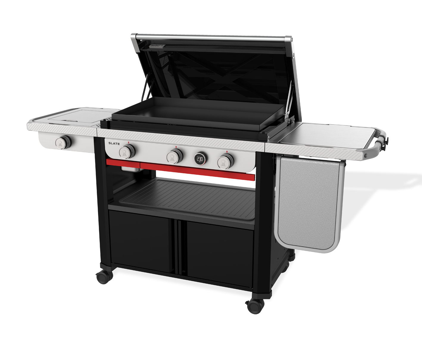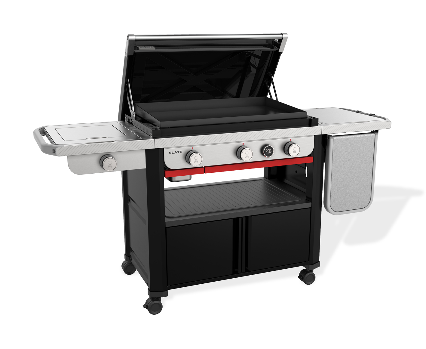 Habe noch mehr Spaß beim Grillen mit der innovativen Weber® SLATE GPD 76 cm Premium Plancha mit digitaler Temperaturanzeige und großer Grillfläche, die über 260 °C erreicht und dein Grillgut auf der gesamten Plancha-Fläche gleichmäßig erhitzt und gart. Die porzellanemaillierte Antihaft-Grillfläche ist sofort einsatzbereit, so dass du saftige Burger, aromatische Pfannengerichte, lecker angebratene Meeresfrüchte, Gemüse und vieles mehr zubereiten kannst. Und mit dem Weber Works Zubereitungs-, Grill- und Aufbewahrungssystem kannst du deine Grill- und Reinigungsutensilien griffbereit aufbewahren, Speisen und Gewürze von der Küche zur Plancha transportieren, den Seitentisch in eine Zubereitungsstation verwandeln und dein Equipment in dicht verschlossenen Behältern verstauen (Zubehör separat erhältlich).