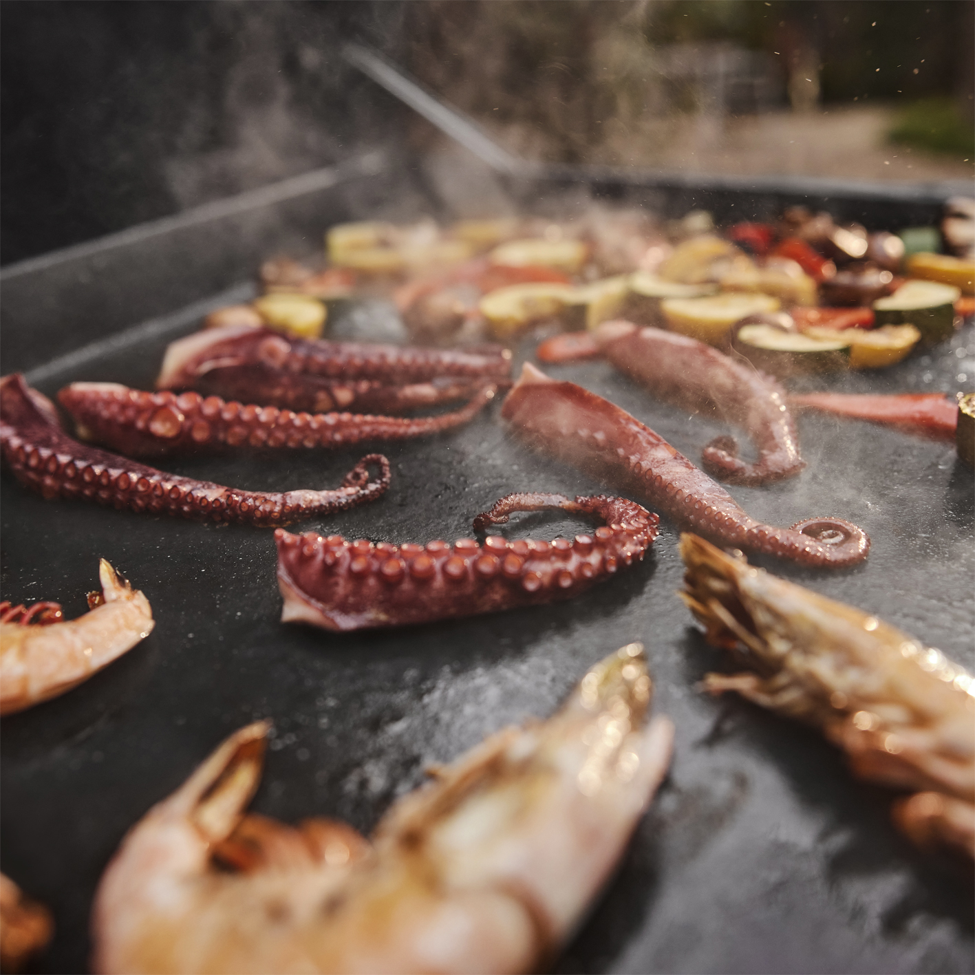 • Gleichmäßige Hitze auf der gesamten Fläche für gleichmäßiges Garen auf der Plancha