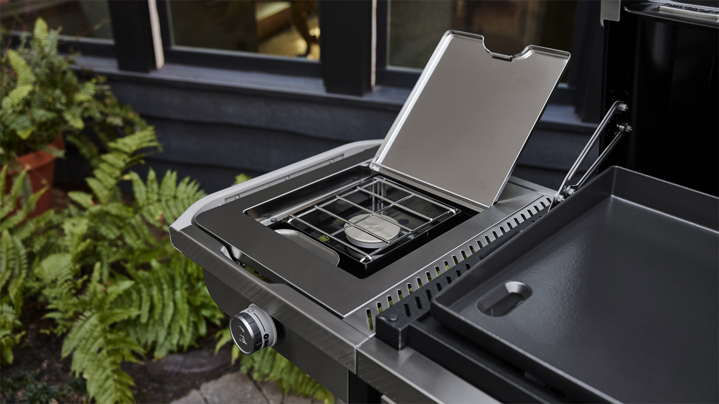 - Der Seitenbrenner bietet eine zusätzliche Grillfläche für Saucen und Beilagen