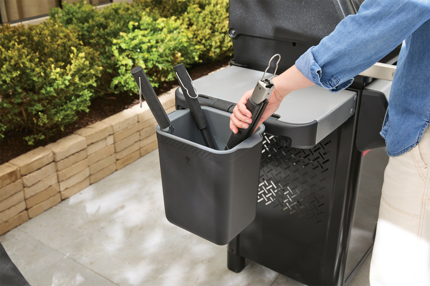 - Herausnehmbarer Einsatz für den Transport der Grillwerkzeuge von der Küche zum Grill.